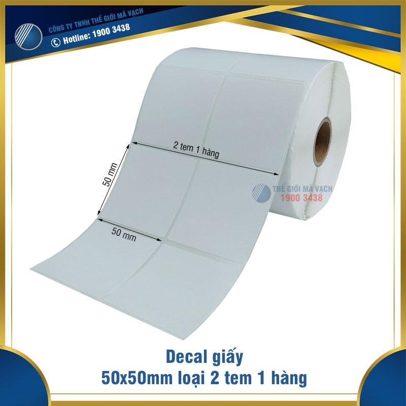 Decal giấy in mã vạch 50x50mm loại 2 tem 1 hàng