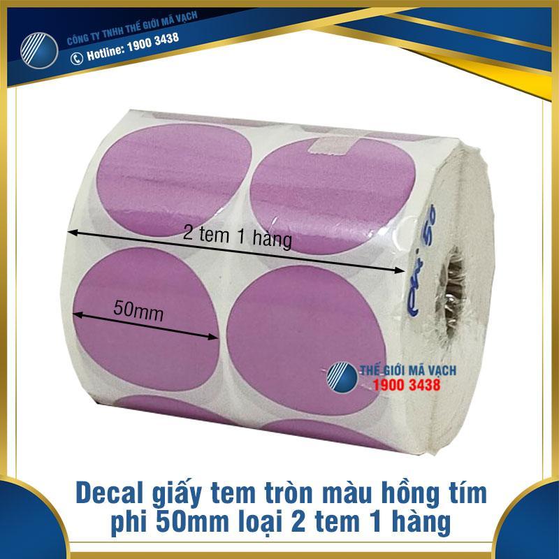 Decal giấy tem tròn phi 50mm màu hồng tím loại 2 tem 1 hàng