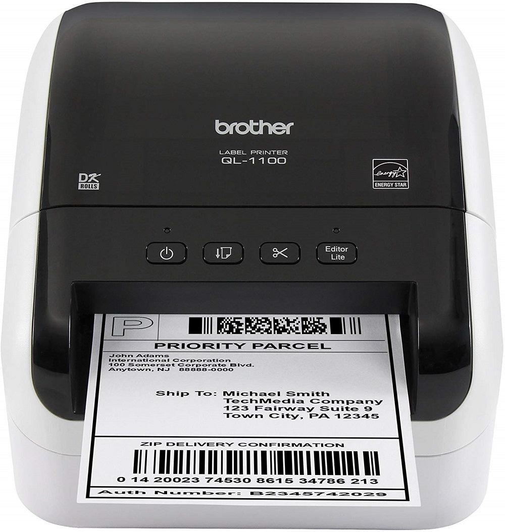 Máy in nhãn Brother QL-1100 là máy in nhãn khổ rộng để bàn, hỗ trợ nhãn DK tối đa 103mm (4 inch), kết nối USB, tốc độ in lên đến 110mm/giây. Đây là model chuyên dụng cho in nhãn vận chuyển khổ lớn, nhãn pallet và nhãn kho hàng trong môi trường logistics và thương mại điện tử.