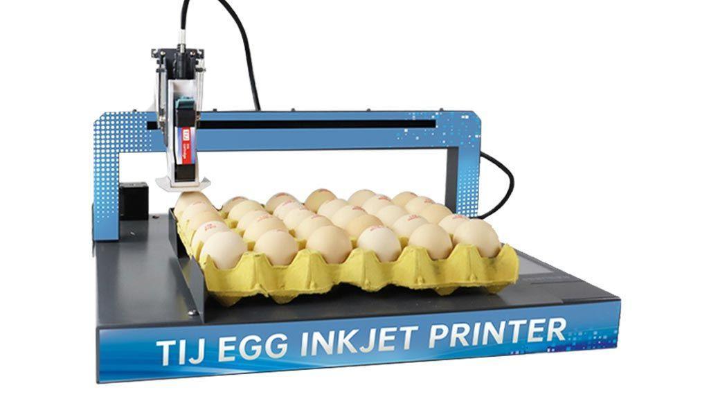 Không, mực khô ngay lập tức sau khi in. Băng tải lòng máng giữ trứng ổn định, không bị xoay.