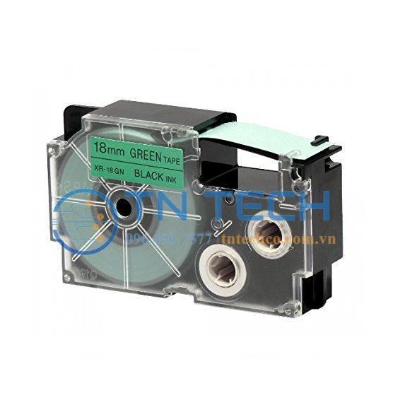 Nhãn Casio XR-18GN1 có khả năng chống nước nhẹ, phù hợp sử dụng trong môi trường văn phòng và kho hàng thông thường. Không khuyến khích sử dụng ngoài trời hoặc ngâm nước.
